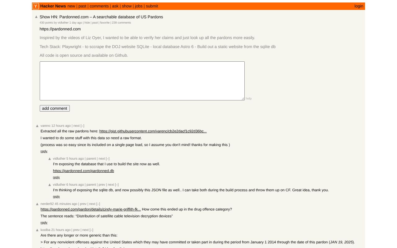 Araştırmacı, gazeteci veya hukukçu olun, ABD af kararlarını incelemek genellikle zaman alıcı ve zahmetli bir süreçtir. Pardonned.com, bu süreci sizin için kökten değiştiriyor. Artık dağınık kaynaklarda bilgi aramak yerine, istediğiniz veriye anında ulaşarak zamanınızı ve enerjinizi daha stratejik işlere odaklayabilirsiniz. Bu platform, size sadece bilgiye erişim sağlamakla kalmaz, aynı zamanda araştırmalarınızda güvenilirlik ve doğruluk sunar.